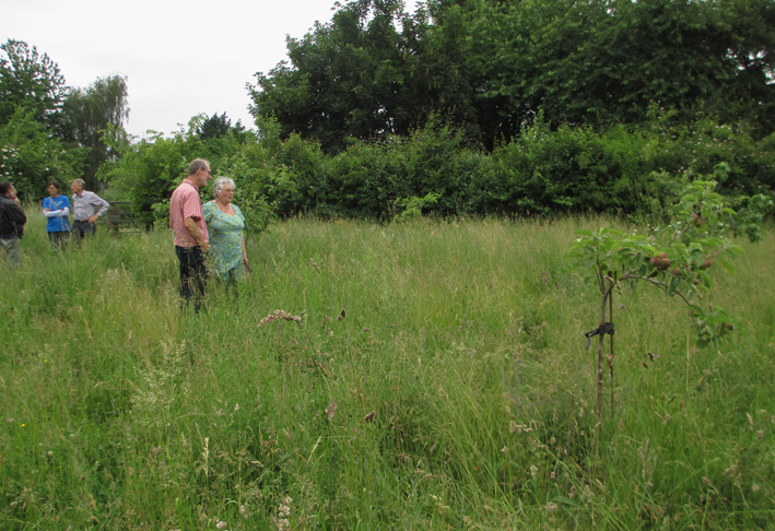 Many of those present joined us for a tour of the orchard itself. As you can see from these picures, the wildflower meadow around the trees was the star of the show. Everyone admired the swift tower, and looked to see the swifts themselves. Hopefully swift towers will be a feature of more community orchards, and the EEAOP site itself, in the future.