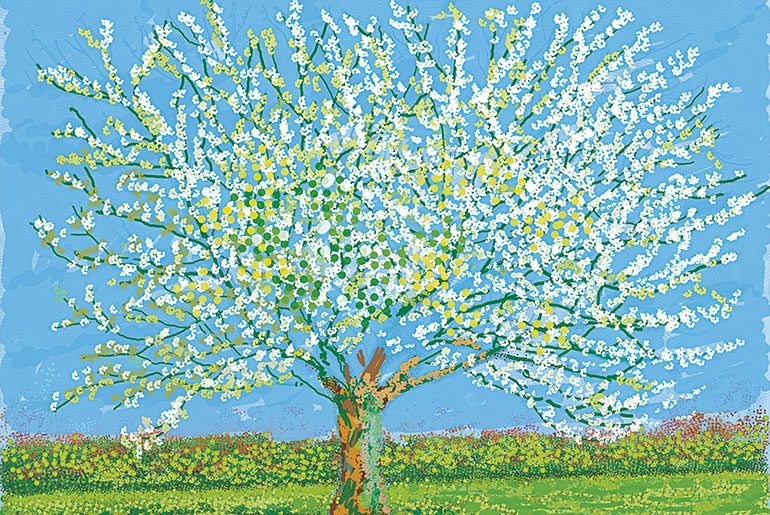 Apple Blossoms or Spring. 1858-59. Sir John Everett Millais Bt PRA (1829-96). Oil on canvas. Courtesy of the Lady Lever Art Gallery, Port Sunlight, WirralDavid Hockney, from the exhibtion The Arrival of Spring, Normandy 2020, Royal Academy 2021. Vincent Van Gogh, The White Orchard, Arles, 1888 Van Gogh Museum, Amsterdam (Vincent van Gogh Foundation)